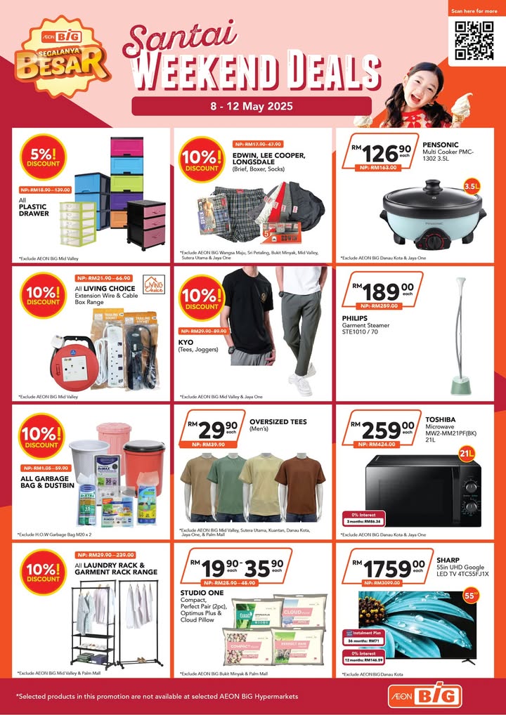 Don’t miss this chance to enjoy quality products at unbelievable prices. Mark your calendars and join countless others in experiencing the thrill of shopping at AEON BIG during the Santai Weekend Deals! Supplies are limited, so hurry and be part of this shopping extravaganza that will elevate your weekend!
