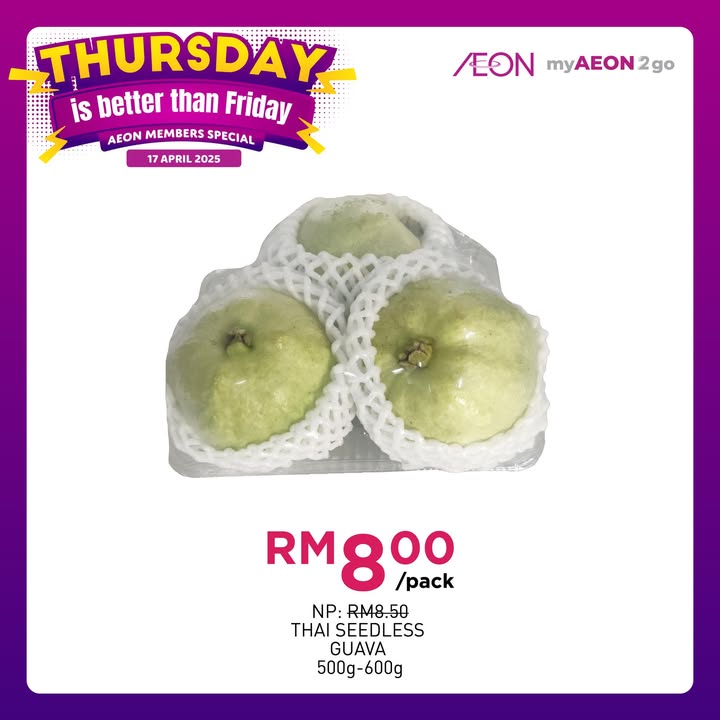 Remember, this incredible “Thursday is Better Than Friday” promotion is available today only – April 17, 2025! Head to your nearest AEON store and fill your cart with fresh, delicious ingredients at unbeatable prices.