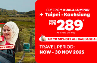 Fly to Taiwan from as low as MYR 289 with AirAsia’s latest promo! Discover Muslim-friendly travel in Taiwan and explore the vibrant culture, food, and scenery. Book now before 30 Nov 2025!