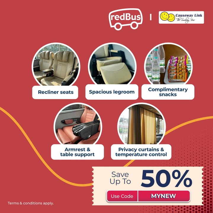 - This promotion is subject to terms and conditions. Please refer to the RedBus website for full details.