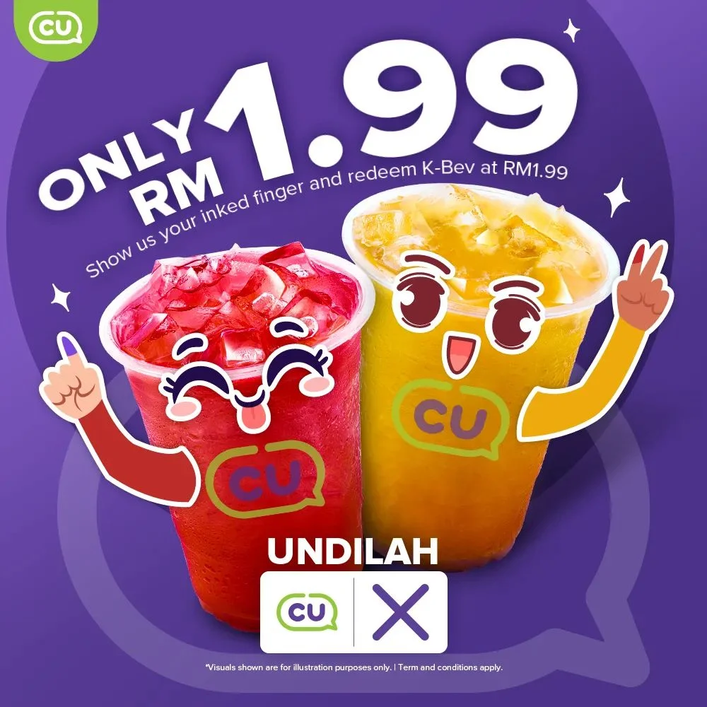 Jom pergi UNDILAH☝️!!!It'll be ????tiring to queue up at the polling centre, but we've got your back???? Show us "the inked finger"☝????after you've voted to redeem CU K-Bev at ...
