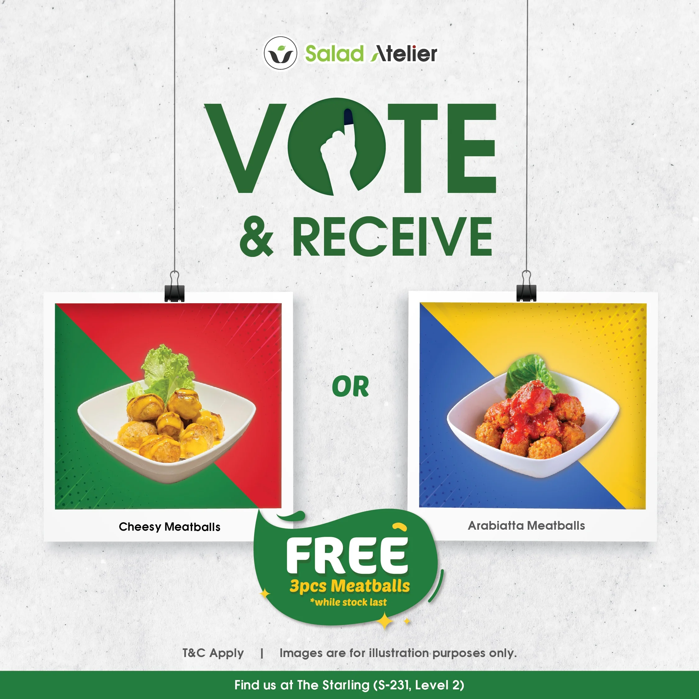 After voting for GE15, make sure to stop by Salad Atelier on 19 November 2022 for FREE 3pcs meatballs!Just show your forefinger marked with indelible ink to claim your free meatballs. Bring your ...