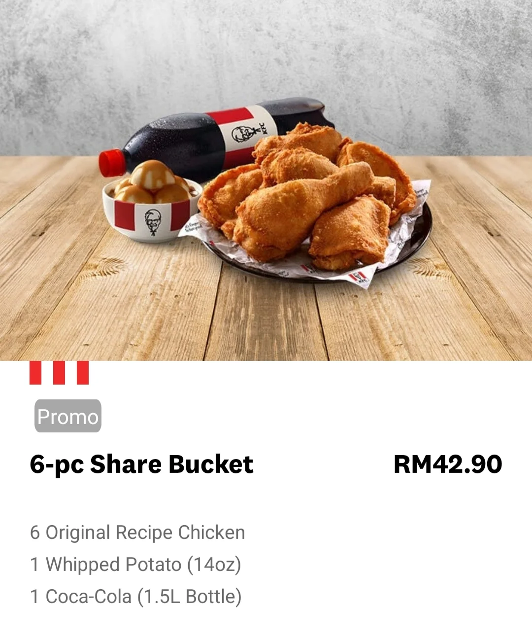 This includes the Malaysia Mix Plate, Tender Snack Plate, and 6pcs Share Bucket. With this deal, you can enjoy delicious KFC food at a fraction of the cost. So why not take advantage of this offer and treat yourself to some finger-licking good chicken today?