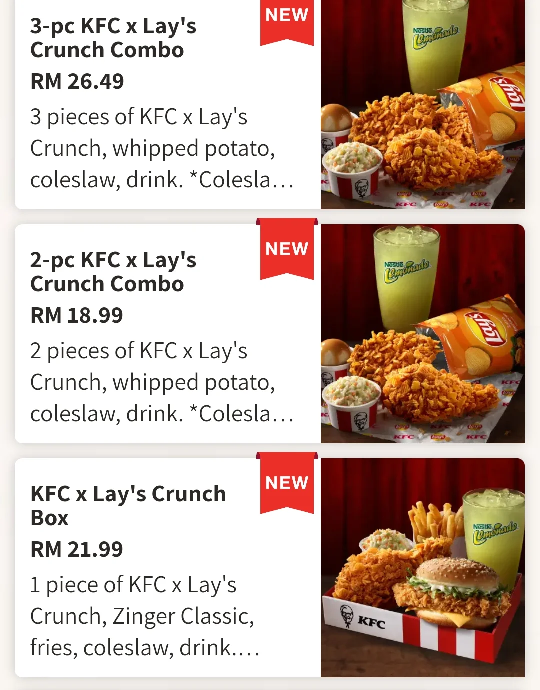 KFC x Lay’s Crunch Combo as low RM 18.99