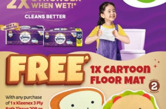 Grab your Kleenex 3-Ply Bath Tissue at Giant now and receive a FREE adorable cartoon floor mat! This limited-time offer also boasts that Kleenex is 2X stronger when wet. Hurry while stocks last!