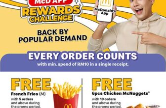 Join the McD App Rewards Challenge from 1–30 June 2025 and unlock FREE French Fries or Chicken McNuggets with your orders! Every RM10 spent gets you closer to delicious rewards.