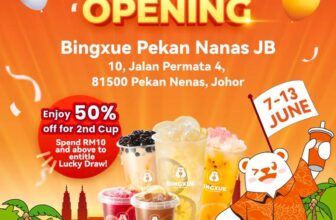 Celebrate the grand opening of Bingxue in Pekan Nanas on June 7! Enjoy 20% off your first order for the first 50 customers, plus exciting giveaways for orders over RM50. Join us for delicious drinks ...