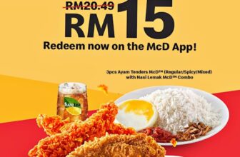 Enjoy McDonald's Malaysia's latest app-exclusive deal – 3pcs Ayam Tenders McD™ (Regular/Spicy/Mixed) with Nasi Lemak McD™ combo and drink for only RM15 (NP RM20.49)! This limited-time promo is ...