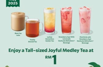 Enjoy Starbucks' exclusive deal on May 21, 2025! Purchase any tea beverage and get a Tall-sized Joyful Medley Tea for only RM 1. Don't miss out on this limited-time offer!