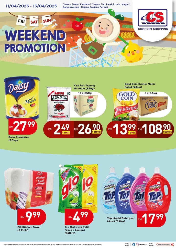Don’t miss out on Pasaraya CS’s amazing weekend promotions on groceries! Enjoy incredible deals at all CS outlets from April 11th to April 13th. Stock up on your favorites and save big!