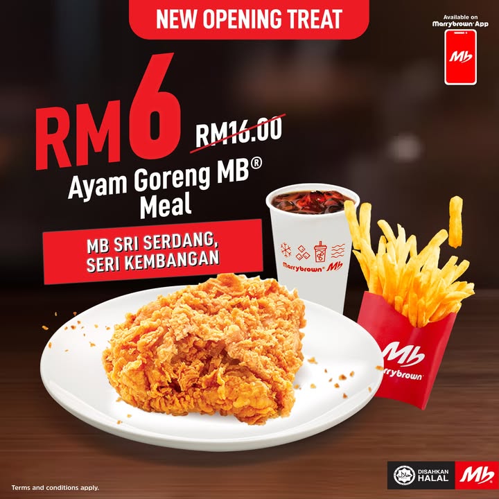 If you are a foodie looking for irresistible deals, you’re in for a treat! Marrybrown, one of Malaysia’s favorite fast-food chains, has just opened a new outlet in Sri Serdang, and they are rolling out the red carpet with a fabulous promotion that you won’t want to miss. Bringing its signature flavors and mouth-watering meals to the area, Marrybrown is inviting you to join in the festivities starting from May 8th!