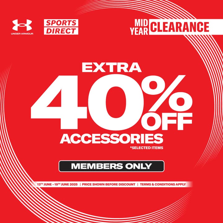 Get ready to elevate your activewear game with an unmissable deal from Sports Direct! This June, enjoy an EXTRA 40% OFF selected Under Armour accessories and footwear exclusively for members. The promotion runs from June 13 to June 19, 2025, making it the perfect opportunity to grab the gear you’ve always wanted at a fantastic price. Hurry—this exclusive offer is available for a limited time only, and stocks won’t last long!