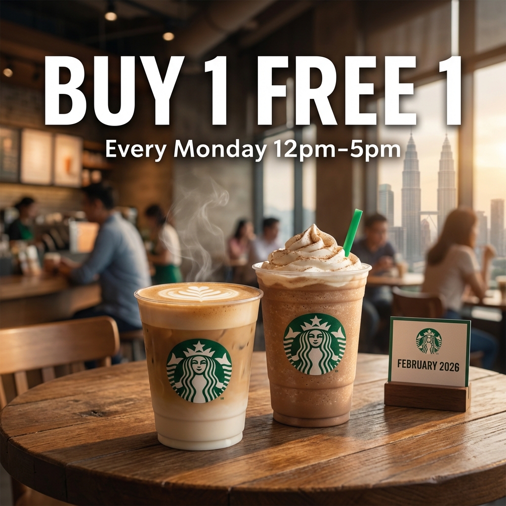 Kickstart your Mondays this February with an amazing treat from Starbucks Malaysia! Whether you need a midday caffeine boost or a sweet treat to share with a friend, Starbucks has got you covered with their Buy 1 Free 1 Promotion for the entire month of February 2026.