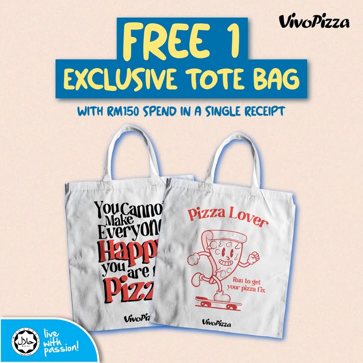 - FREE Exclusive Tote Bag with RM150 Spend: Spend RM150 or more and walk away with a stylish exclusive tote bag. Not only will you be able to enjoy your favorite pizzas in-style, but you’ll also be making eco-friendly choices!