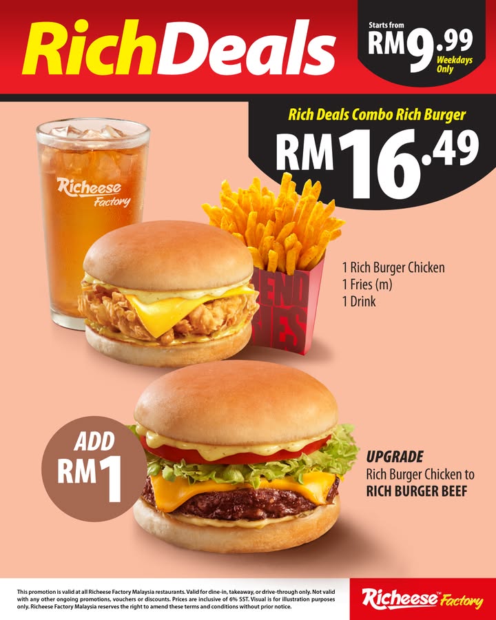 Are you ready for a tasty adventure? Richeese Factory is rolling out unbeatable Rich Deals that will make your weekdays more delicious than ever! Starting May 28, 2025, you can indulge in mouth-watering meals at incredibly low prices—combos starting from just RM9.99! This special offer will be available throughout the weekdays across all Richeese Factory branches, but hurry, as these deals are only available until further notice.