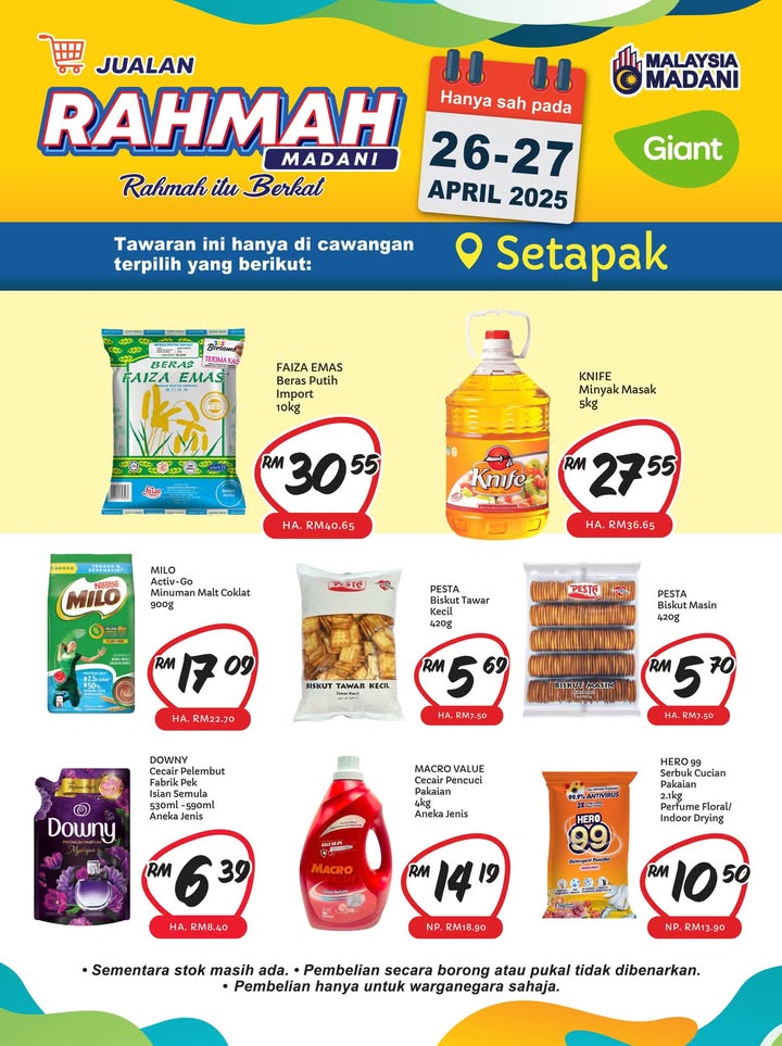 Get ready to save big during the highly anticipated Jualan Rahmah event at Giant Supermarket in Setapak! On April 26th and 27th, 2025, shoppers are invited to experience fantastic savings on a variety of essential goods. This promotional deal is not only about great prices but also about the joy of smart shopping, allowing families to secure what they need without breaking the bank.