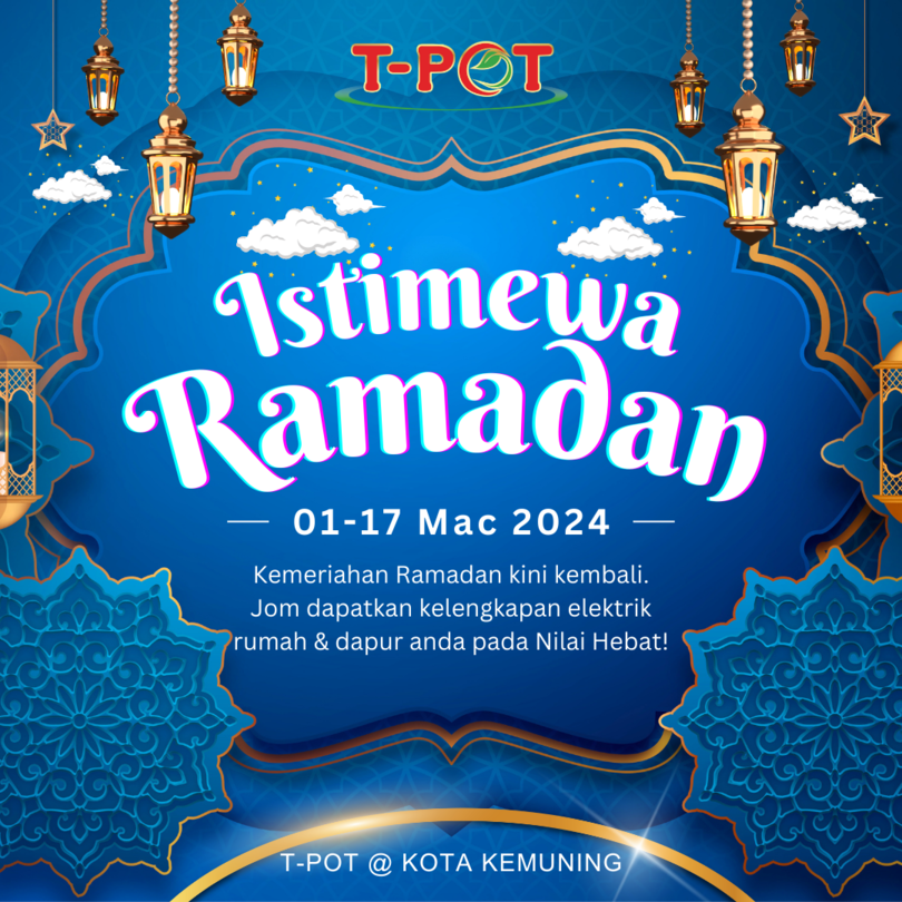 Kemeriahan bulan mulia Ramadan kini kembali. Mari dapatkan kelengkapan elektrik rumah & dapur anda pada Tawaran Istimewa hanya di T-POT Kota Kemuning! πππππ πππππ, πππππ πππππ! π