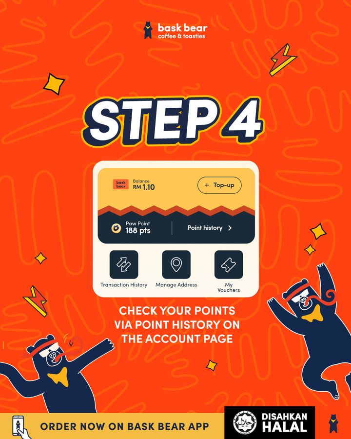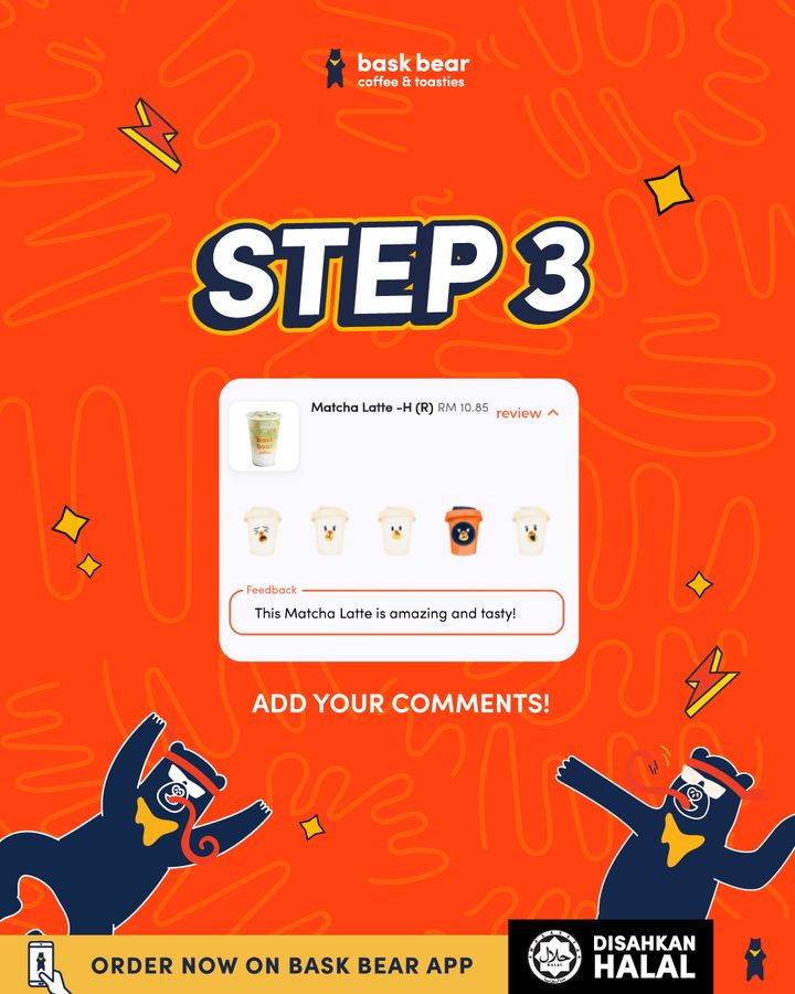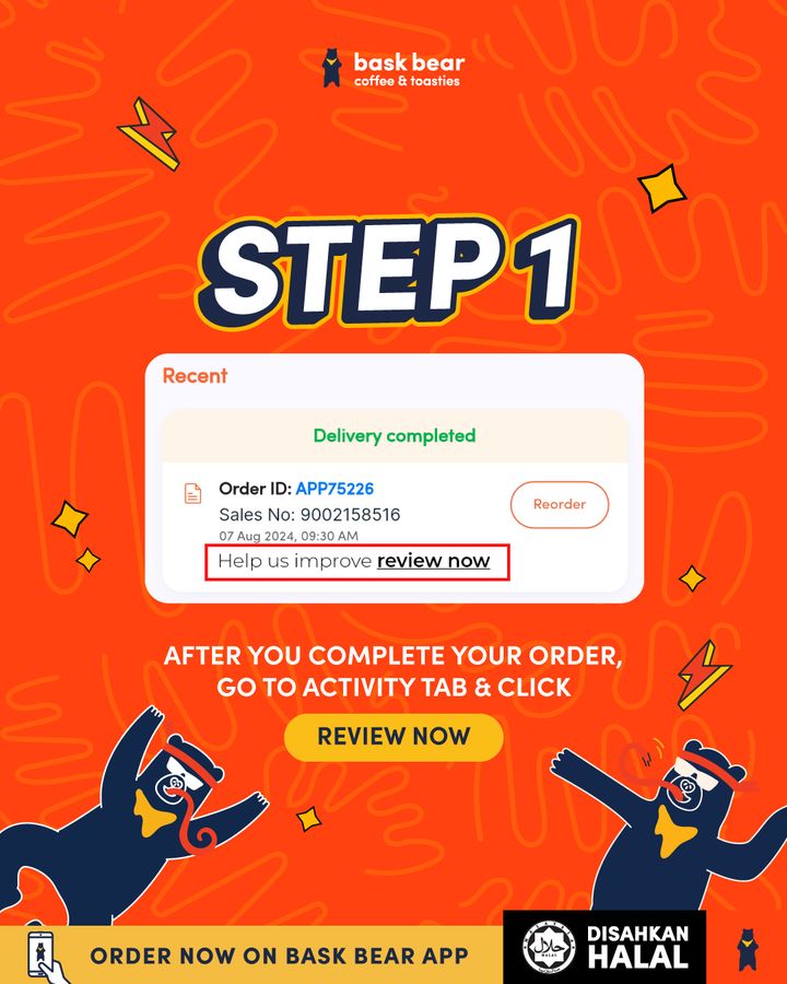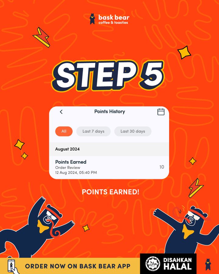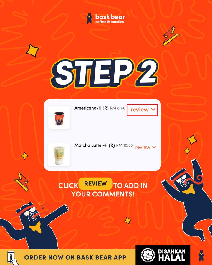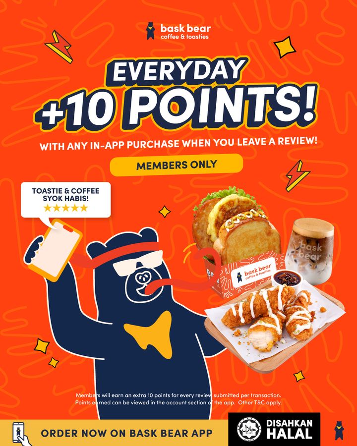 - Download the Bask Bear App and leave a review. Share your honest thoughts on your food experience and earn +10 points instantly.