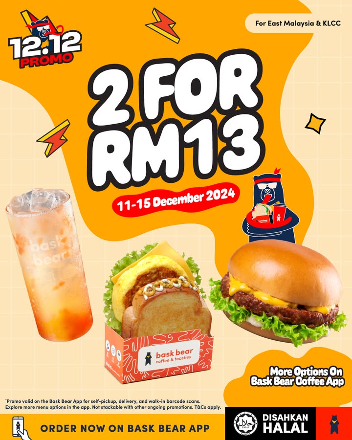 Get ready for a flavor explosion! Bask Bear is offering an incredible limited-time deal: two delicious burger and drink combos for the price of one! That’s right, you can mix and match your favorite burgers and fizzy drinks and pay only RM12 for the whole shebang. This irresistible offer is available for a limited time only, so don’t miss out!