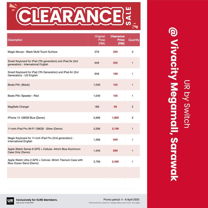 The Urban Republic, UR by Switch, and The Mobile Company Clearance Sale is a fantastic opportunity to save big on a wide variety of tech products. Head to an outlet near you, and happy bargain hunting!