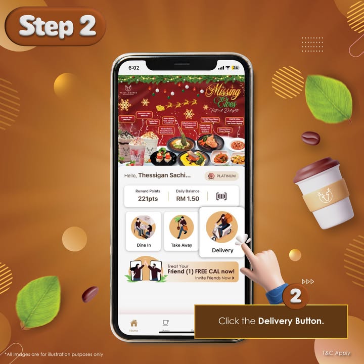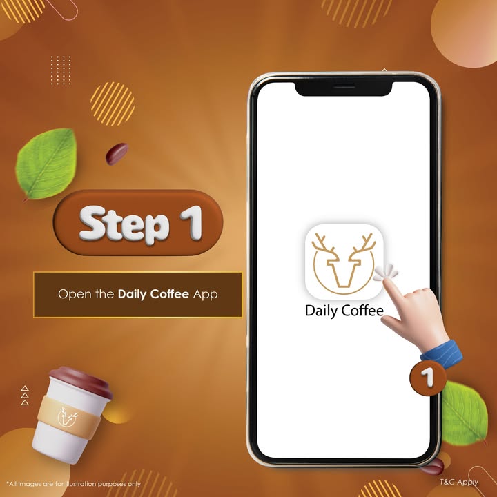 - Download the Daily Coffee app: Download the app from the Google Play Store for Android https://play.google.com/store/apps/details?id=com.dailycoffee or the Apple App Store for IOS https://apps.apple.com/my/app/daily-coffee-malaysia/id645143668.
