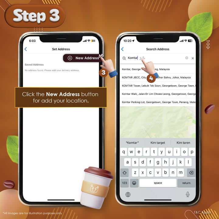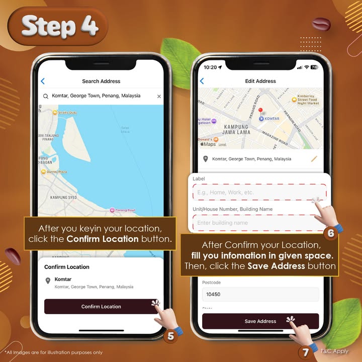 - Confirm and Save: Key in your delivery address, confirm its accuracy, and save it for future orders – making your next coffee order even faster!