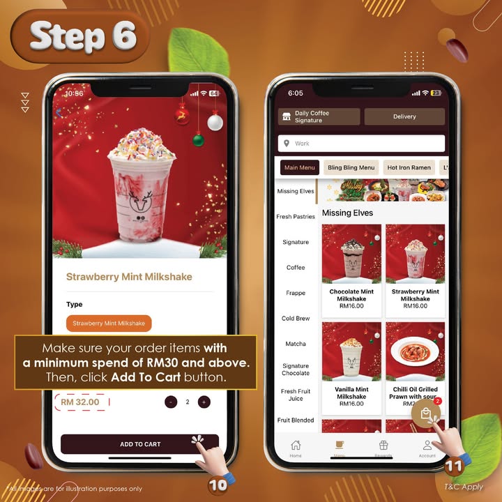 - Browse and Order: Explore the main menu, making your selections of food and beverages, ensuring your total order exceeds RM30 to qualify for free delivery. If you like, you can refer to the photos provided to help you decide what you’d like to order.