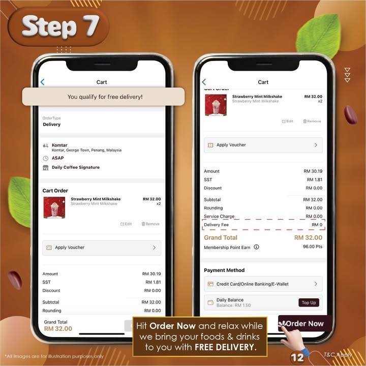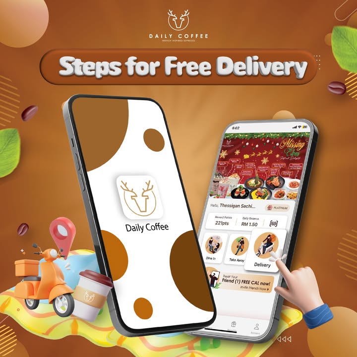Are you a coffee lover in Malaysia searching for a convenient and affordable way to enjoy your daily caffeine fix? Then look no further! Daily Coffee is thrilled to announce its amazing new FREE delivery promotion for a limited time! Order your favorite beverages and food items through the Daily Coffee app and receive FREE delivery on orders of RM30 or more. This incredible offer is too good to miss, so jump in and order now!