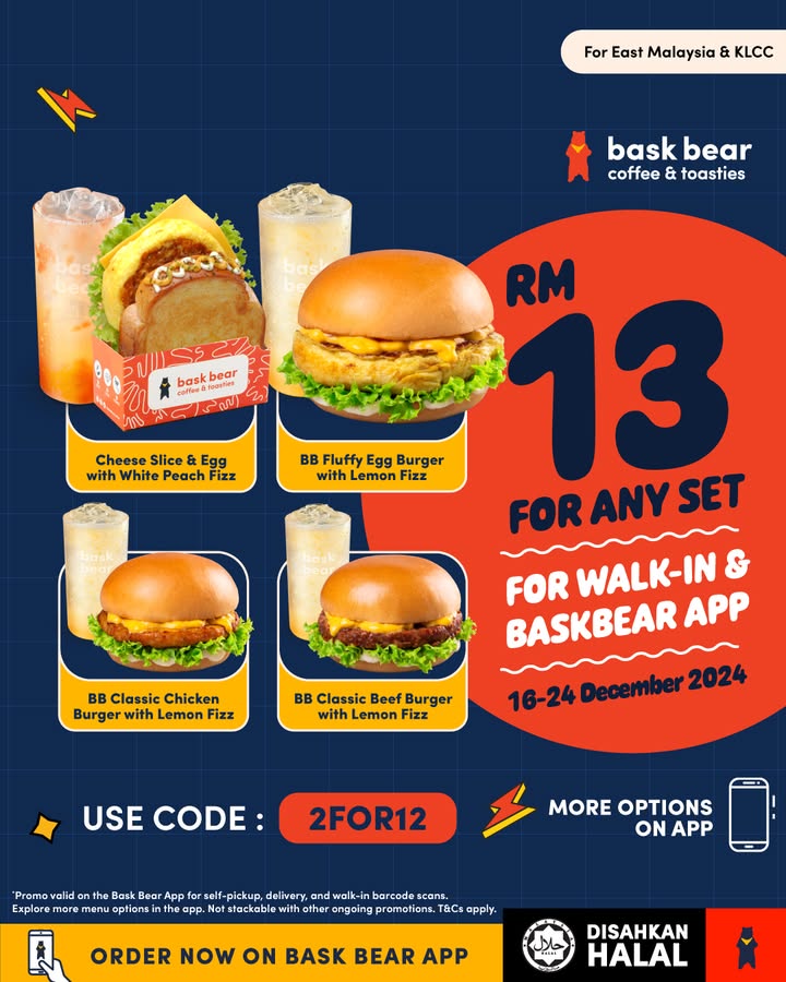 Don’t miss this amazing opportunity to indulge in delicious meals at a fantastic price. Head over to Bask Bear for their RM12 promotional deal before it ends on December 24th, 2024. Grab your favorites now!