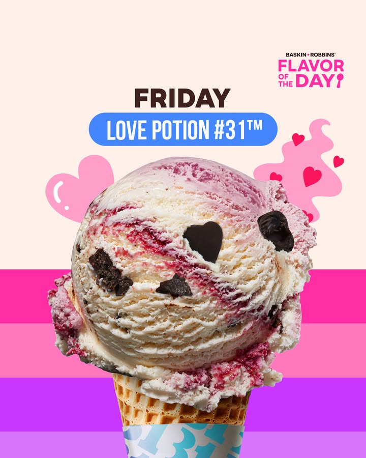 Indulge your senses with Baskin-Robbins’ Love Potion #31—where every scoop is a wonderful love story waiting to be tasted!