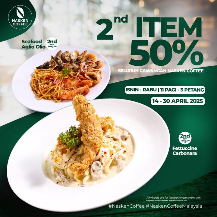 If you’re a coffee enthusiast or food lover in Kelantan, Malaysia, then this is an opportunity you can’t miss! Nasken Coffee is offering an incredible 50% discount on selected lunch menu items exclusively for dine-in customers from April 14 to April 30, 2025. Whether you’re dropping by during your lunch break or enjoying a relaxing meal with friends, this promotion guarantees delicious food, great savings, and a cozy atmosphere.