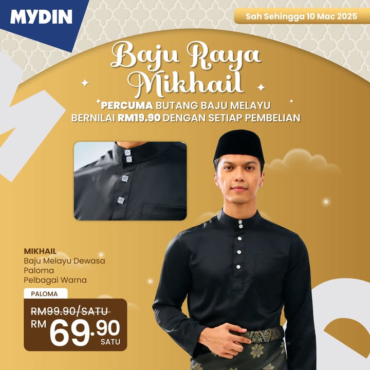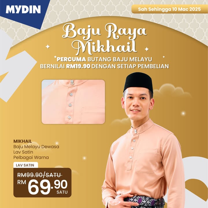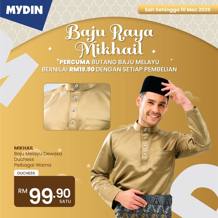 This exclusive offer is valid only until 10 March 2025, so don’t wait too long to grab your Baju Melayu and free button. Visit your nearest MYDIN store today and get ready to shine this Raya!