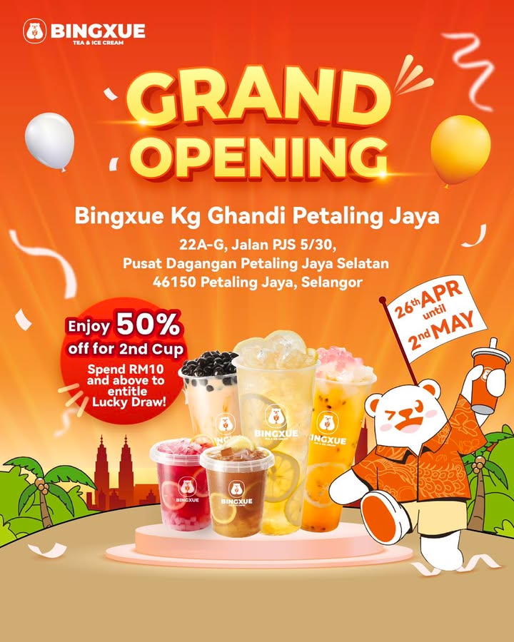 Don’t miss this fantastic opportunity to be part of our grand opening at Kg Ghandi. Whether you’re a long-time fan of Bingxue drinks or new to our brand, we welcome you to share in the festivities. Enjoy the special discounts, take memorable photos, and taste our signature beverages freshly brewed for the occasion.