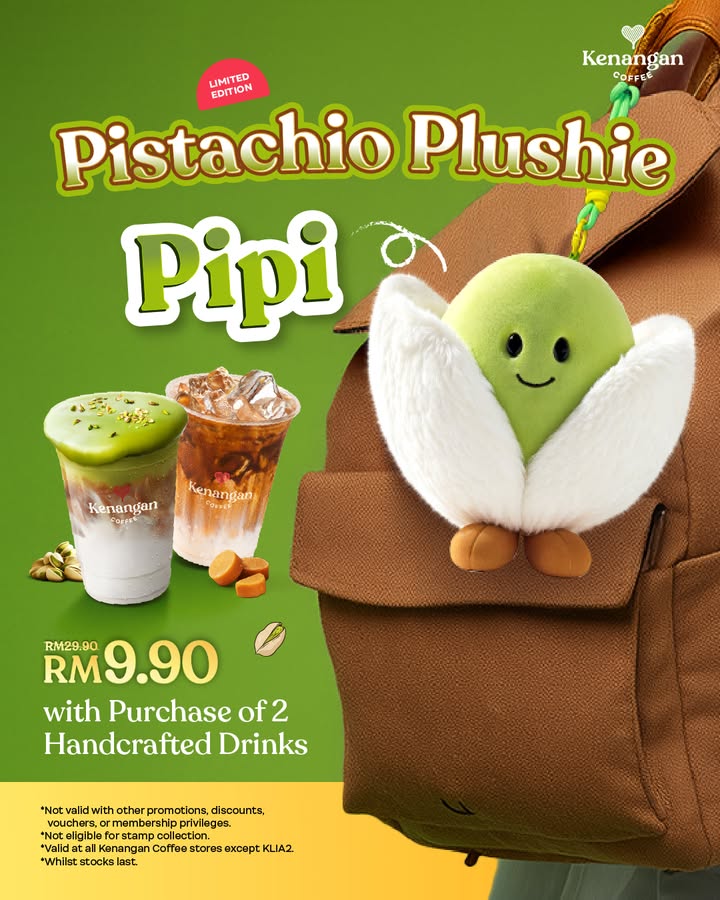 Simply head to your nearest Kenangan Coffee outlet, order your qualifying handcrafted drink(s), and ask to add the Pipi Pistachio Plushie to your purchase at the promotional price. Remember that availability is limited, so it’s best to act fast!