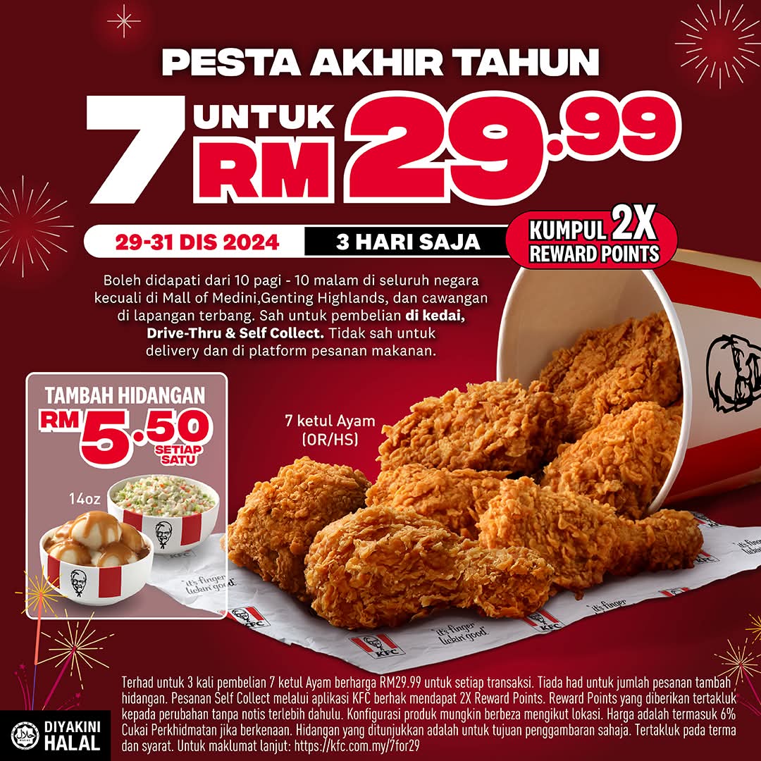 For more details about this promotion, visit KFC 7 for RM29.99.