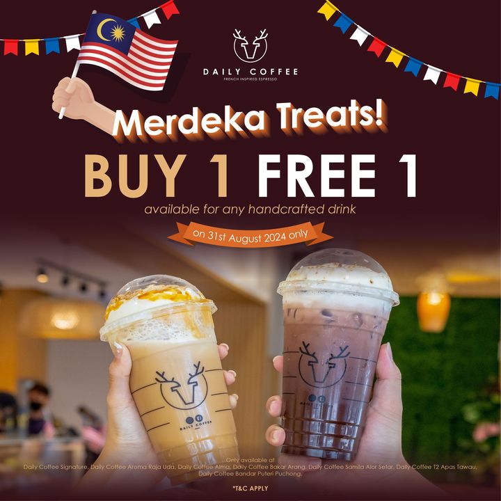 Celebrate Merdeka with Daily Coffee: Buy 1 Free 1 Beverage Promotion