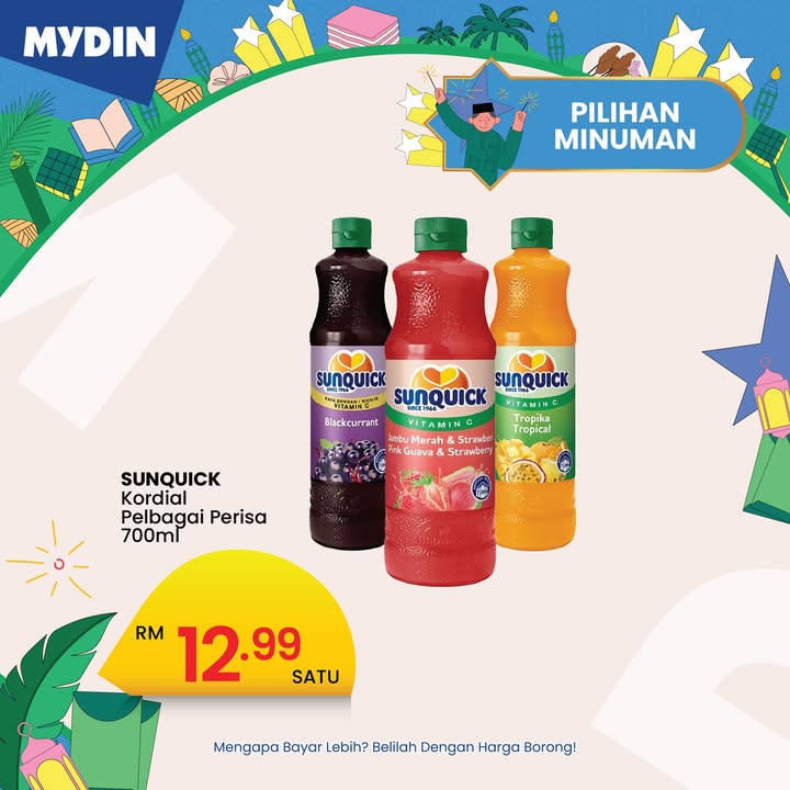 Don’t delay! Head to your nearest MYDIN store in Semenanjung Malaysia between March 20, 2025, and April 7, 2025, to take advantage of these fantastic drink deals. Stock up on your favorite beverages and complete your Raya preparations with MYDIN’s budget-friendly options. With refreshing drinks and unbeatable prices, MYDIN is your one-stop shop for a joyful and memorable Raya celebration!