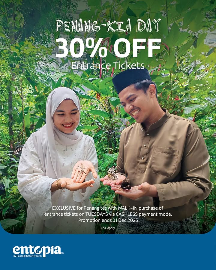 Penang-Kias! Enjoy 30% OFF Entopia by Penang Butterfly Farm Every Tuesday!