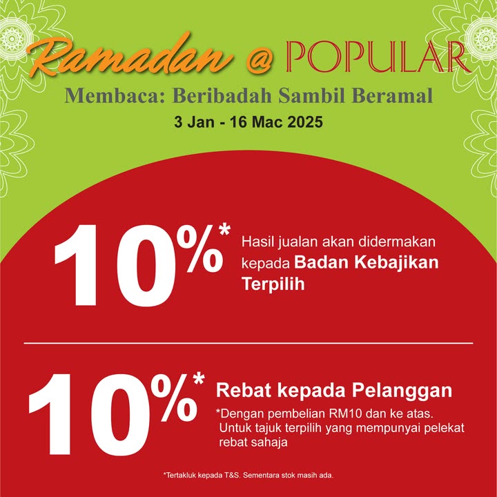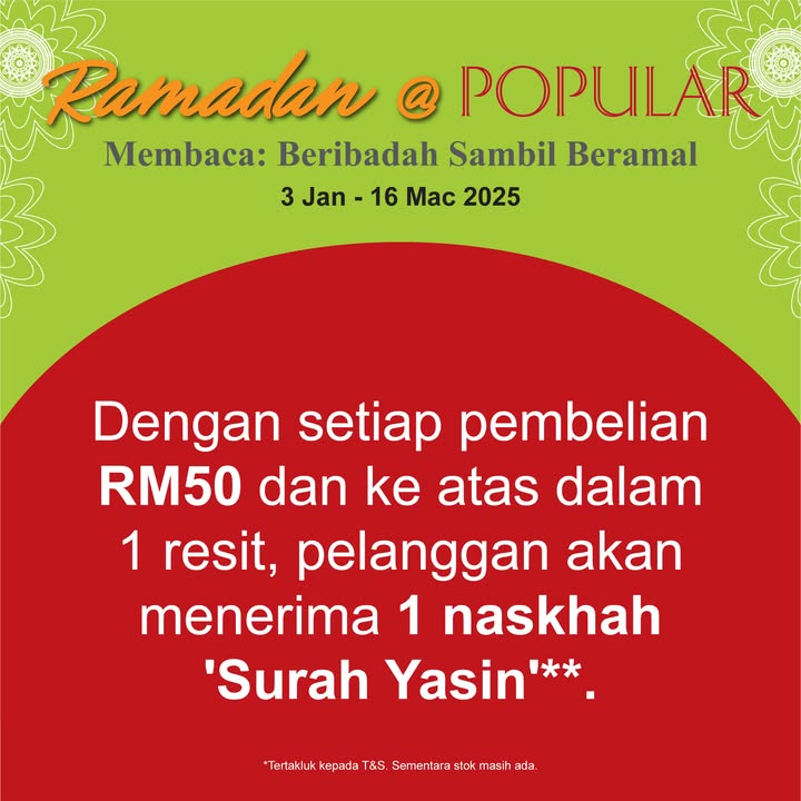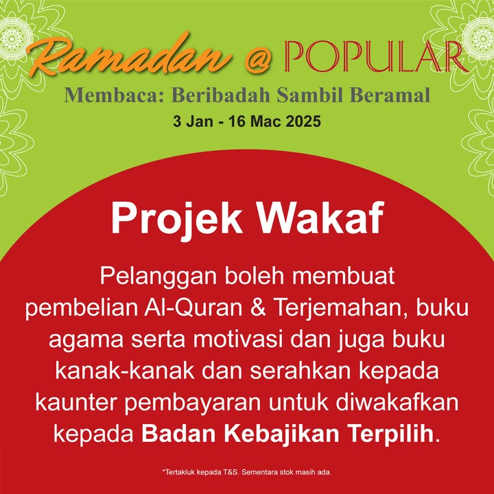 This promotion, aptly themed “Ramadan @ POPULAR, Membaca: Beribadah Sambil Beramal” (Ramadan @ POPULAR, Reading: Worship While Giving), offers several opportunities to engage with reading and charitable activities. Let’s delve into details of what POPULAR has in store for you: