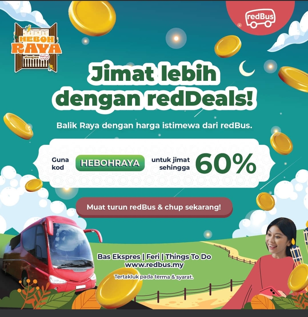 Are you ready for a memorable Raya journey this 2024? Get your travel plans sorted affordably and conveniently with redBus! Maximise your savings by taking advantage of our exclusive HEBOH RAYA promo with up to 60% off on bus tickets. Whether you’re heading back to your hometown or exploring new destinations, redBus has got you covered.