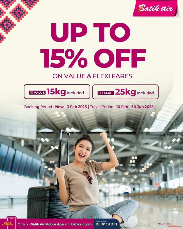Don’t miss out on this fantastic opportunity! The promotion is available for bookings made through Batik Air’s official website or the Batik Air Mobile App. Make sure to book by February 3, 2025, to secure your discounted fare. Visit Batik Air today and start planning your journey.