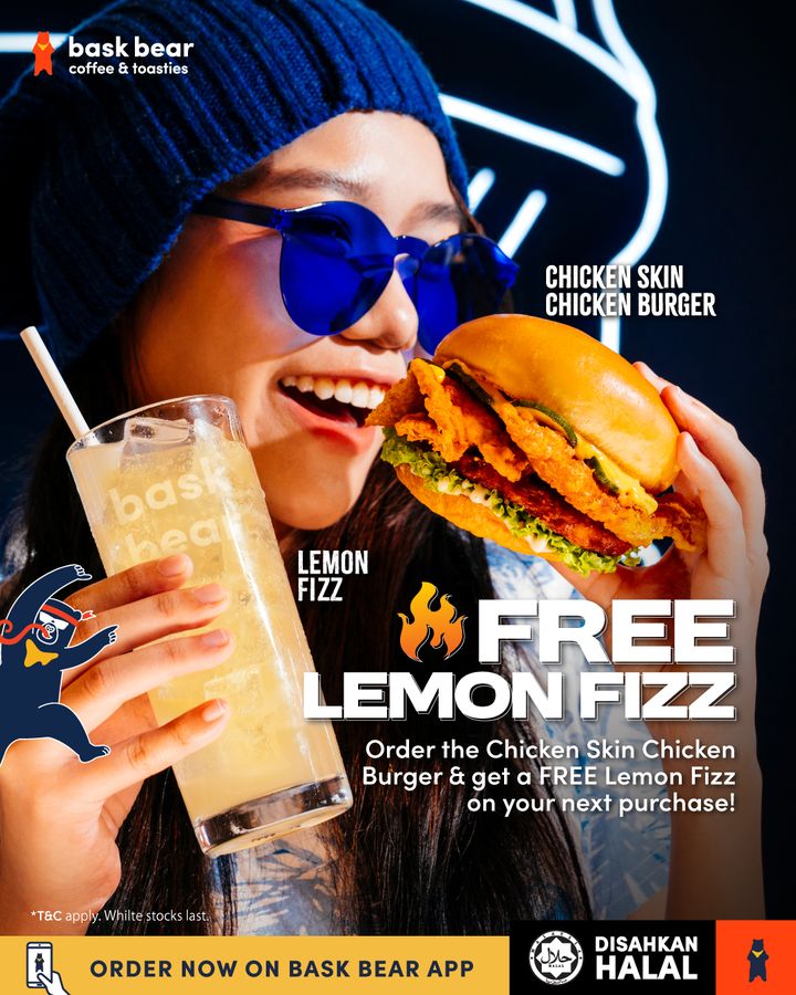 Get ready to tantalize your taste buds! For a limited time only, Bask Bear is offering a FREE Lemon Fizz with every purchase of their delicious Chicken Skin Chicken Burger! That’s right – a refreshing, zesty Lemon Fizz is yours to enjoy absolutely free when you order your favourite burger via the Bask Bear app. But hurry, this offer is limited to only 100 redemptions, so don’t miss out!