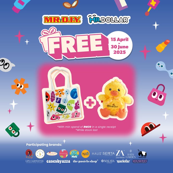 Score Big with MR.DIY & MR.DOLLAR: Free Shopping Bag & Wunderduck Plushie in April 2025!