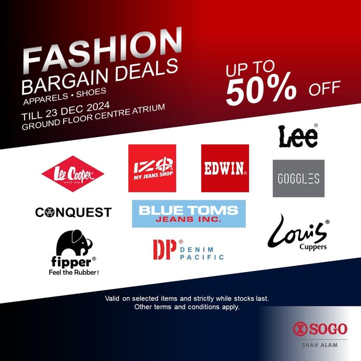 This phenomenal opportunity to shop for stylish clothing, footwear, and accessories at unbelievably discounted rates is not one to be missed. Visit SOGO Shah Alam from now until December 23, 2024 for great deals, and discover a range of styles that fit your preferences. Grab these savings before they’re gone! Remember to check the terms and conditions for the exact discounts offered.