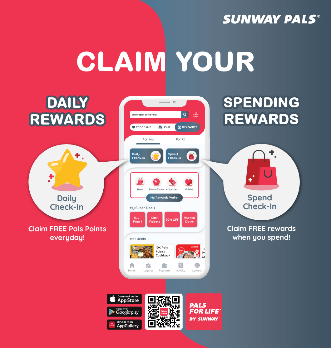 Introducing the Daily Check-In & Spend Check-In on Pals For Life App! Earn Pals Points simply by checking in to the Daily Check-In Rewards & Get Monthly Spend Check-In Rewards by spending with Sunway Pay via Pals For Life app.