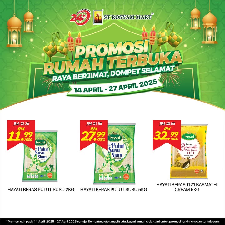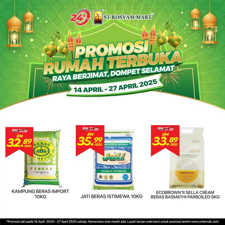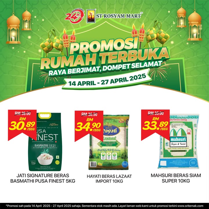 The ST Rosyam Mart Rumah Terbuka Promotion is a limited-time opportunity to save big on all your essential needs. Head down to your nearest branch and experience the joy of shopping knowing you’re getting the best deals in town. Prepare for Raya, stock up your pantry and get your home ready for guests.