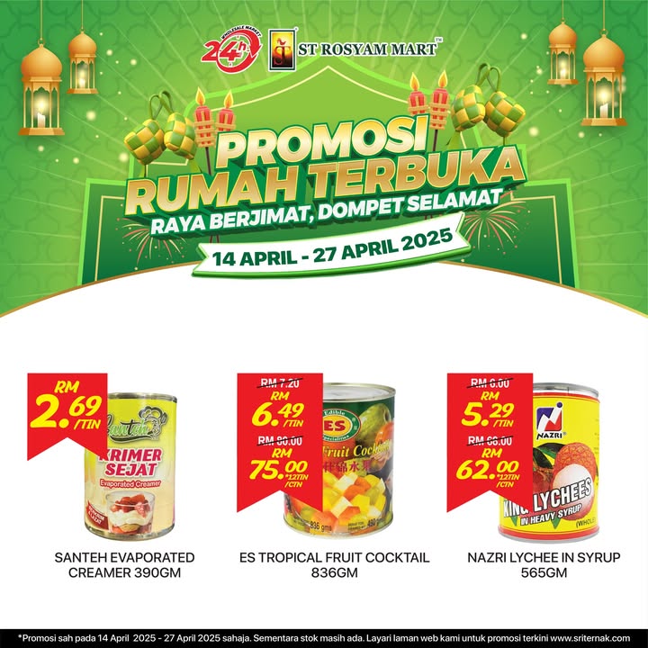 The Rumah Terbuka Promotion is available at all ST Rosyam Mart branches: