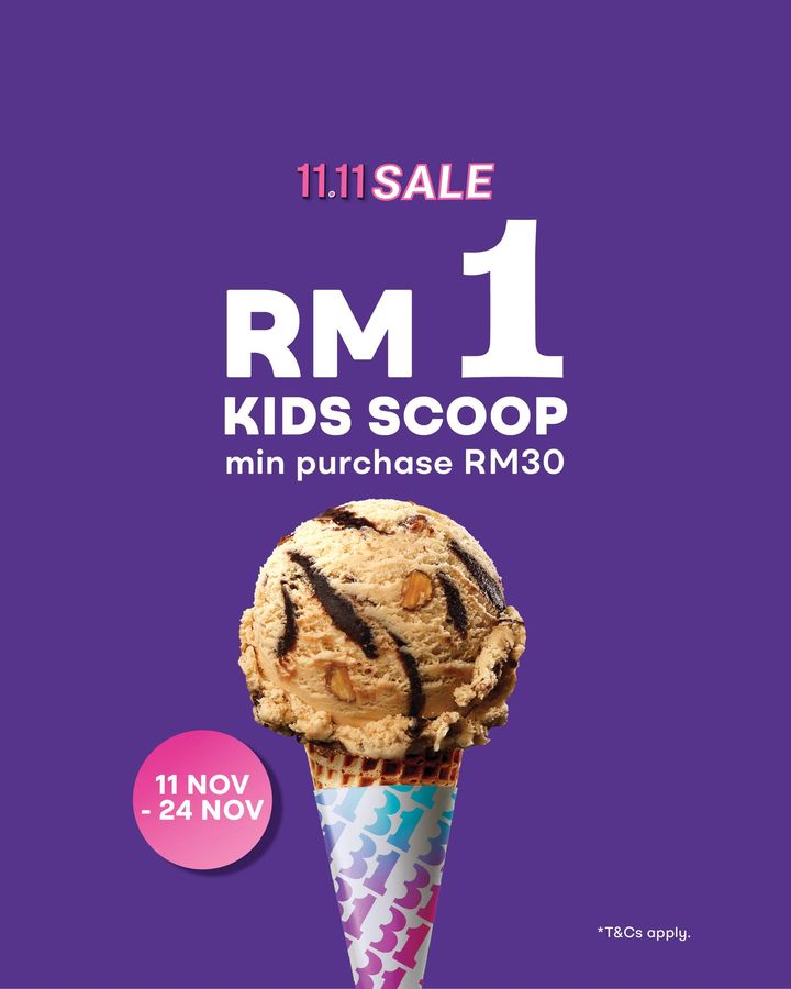 Get ready for a delicious treat! Baskin-Robbins Malaysia is offering an incredible deal this November: a kids scoop of ice cream for only RM1! This sweet offer is available for a limited time only, from now until November 24th, 2024. To claim this amazing deal, simply spend RM30 or more in a single transaction at any participating Baskin-Robbins location or via their mobile app. Don’t miss out on this chance to treat your little ones to a scoop of happiness! Terms and conditions apply.