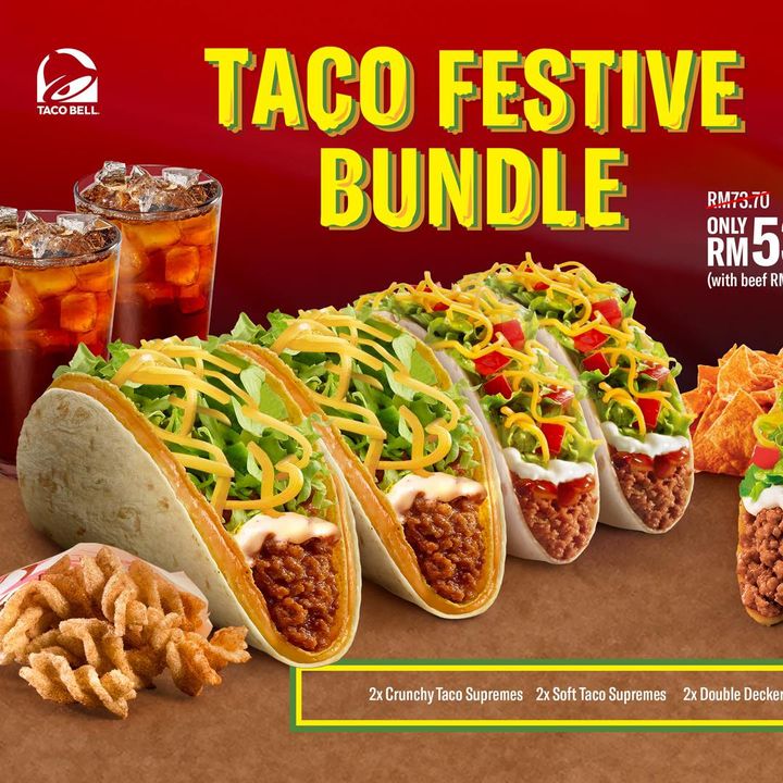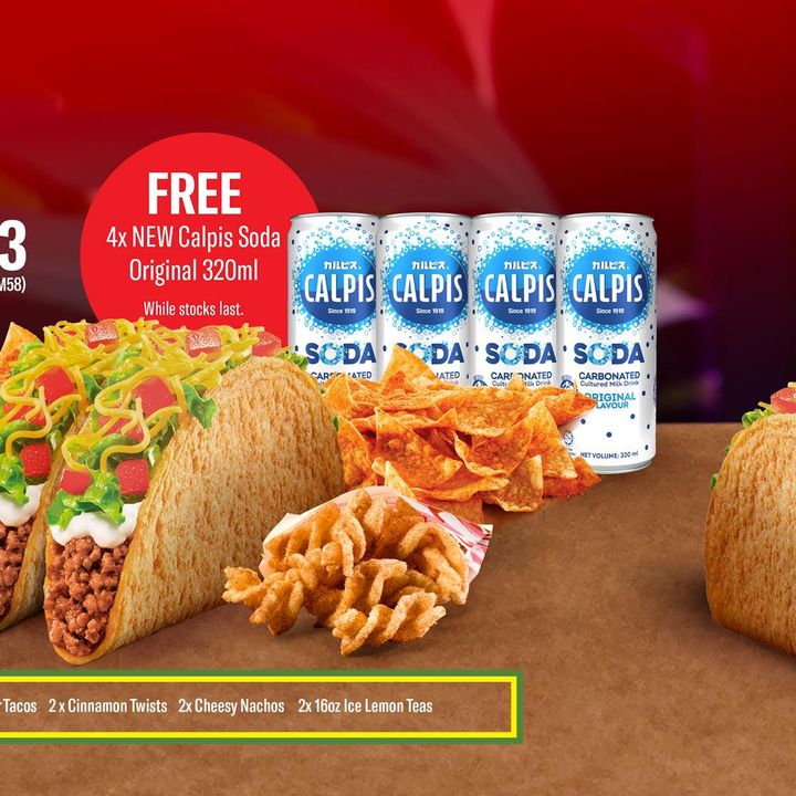 Tacos for CNY? Why not – give mum a rest after cooking that big reunion dinner! Choose between Taco Bell Festive and Extravaganza Bundles and get 4x 320ml Calpis Soda Originals for FREE with either bundle!