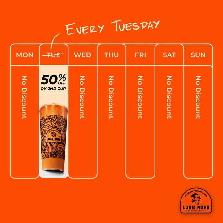 Treat Yourself Tuesdays: 50% Off Your Second Cup at Lung Ngen Thai Station!